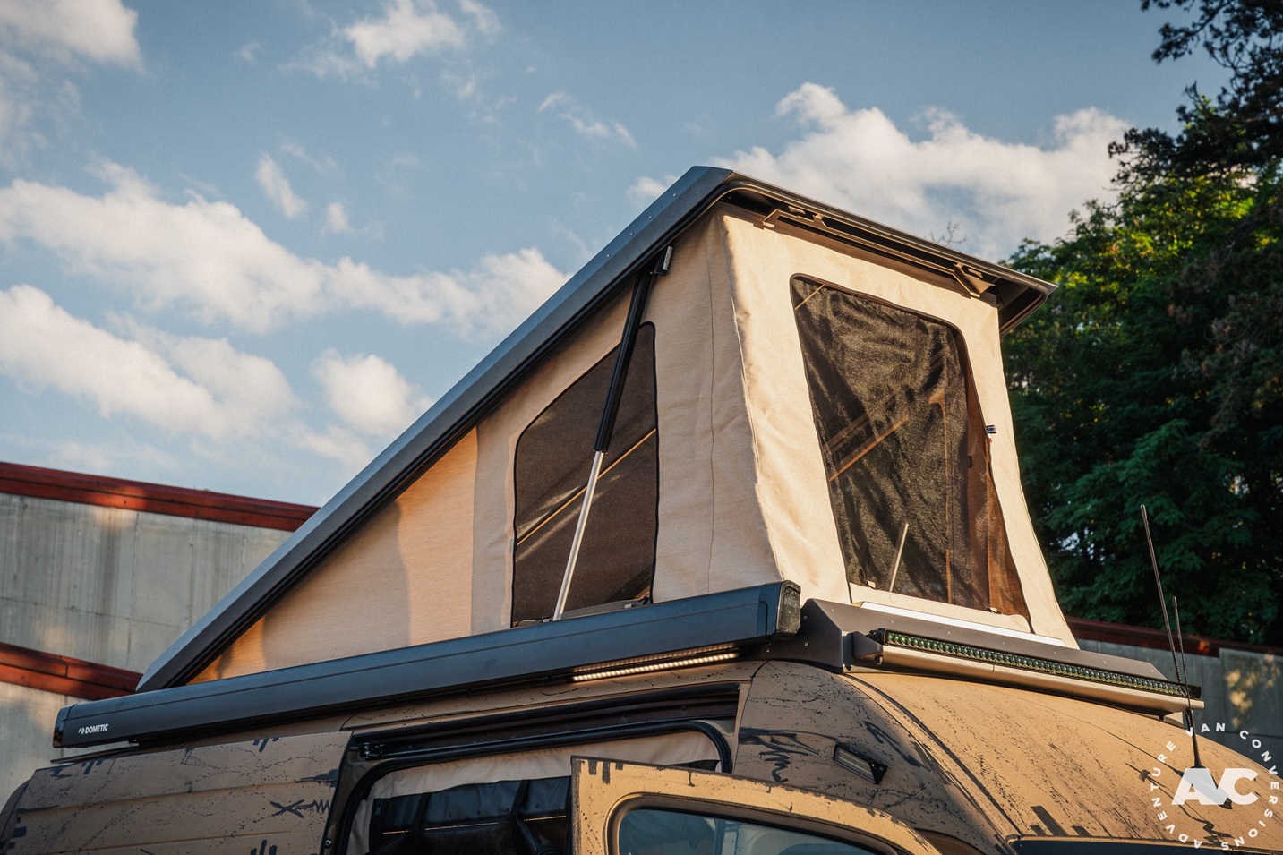 Nasze namioty dachowe, dostosowane do wszystkich modeli Mercedes Sprinter, idealnie integrują się z konstrukcją pojazdu.
