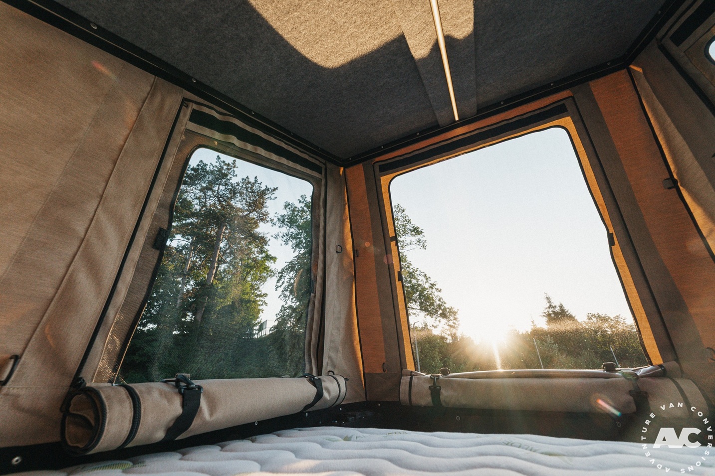 Nasze namioty dachowe zapewniają dodatkową przestrzeń do spania bez uszczerbku dla wnętrza kampera.